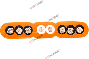 天車扁電纜采用柔性扁平結構設計,作為天車設備的動力或控制連接電纜移動安裝使用。天車扁電纜一般采用隨行懸掛式安裝,也被稱作天車(行車)隨行扁電纜。電纜兩側可根據需要置入高強度的鍍鋅抗拉軟鋼絲以增強電纜的抗拉性能。專用外護套復合料,可在-15℃低溫下仍然操持柔軟,阻燃。應用范圍